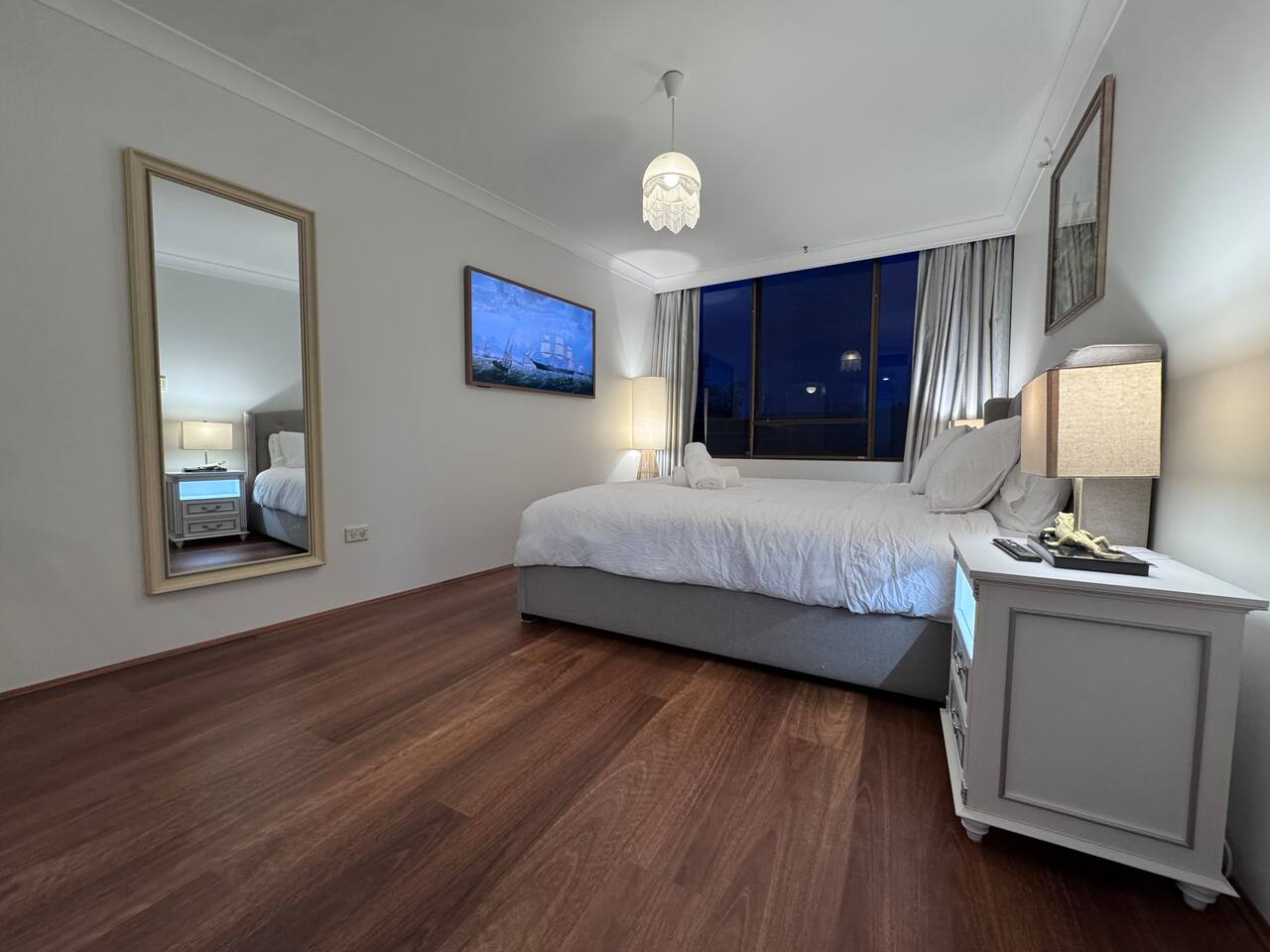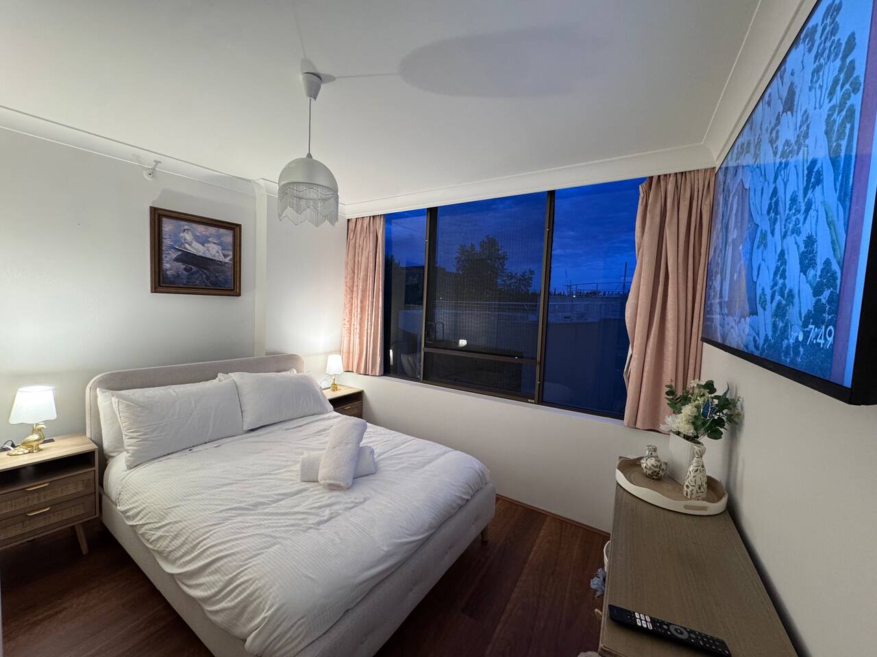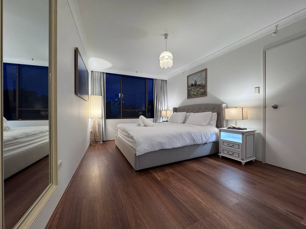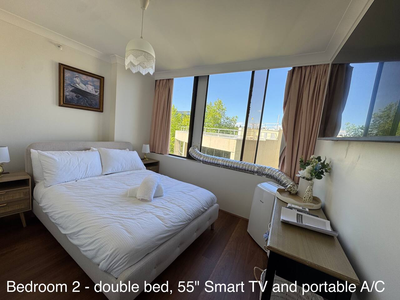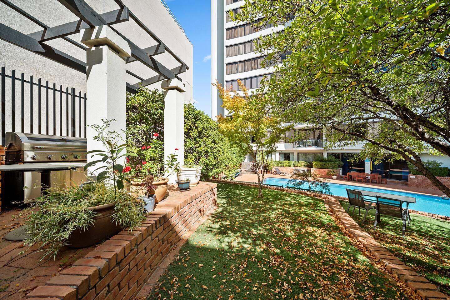 A refined 3-bedroom residence overlooking peaceful gardens and the pool at Capital Tower. Each bedroom includes reverse-cycle A/C, a large Smart TV and the living area offers a premium soundbar for cinematic nights. Surrounded by curated art and spotted-gum floors, it features a sunny balcony and serene atmosphere. Guests enjoy a heated pool, gym, sauna, tennis and squash courts. Stroll to Lake Burley Griffin, NewActon restaurants and galleries, bringing best cultural and dining experiences.