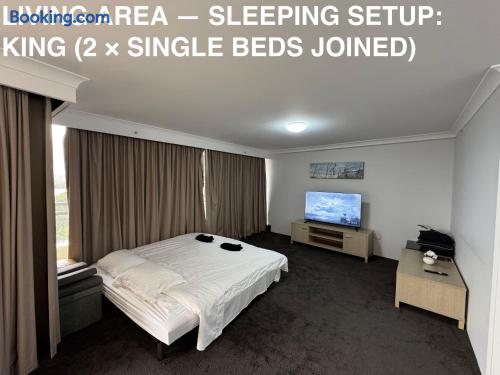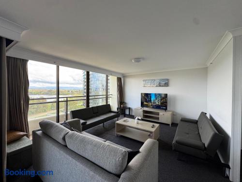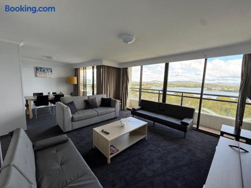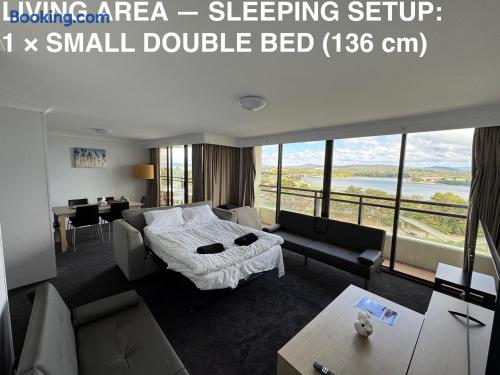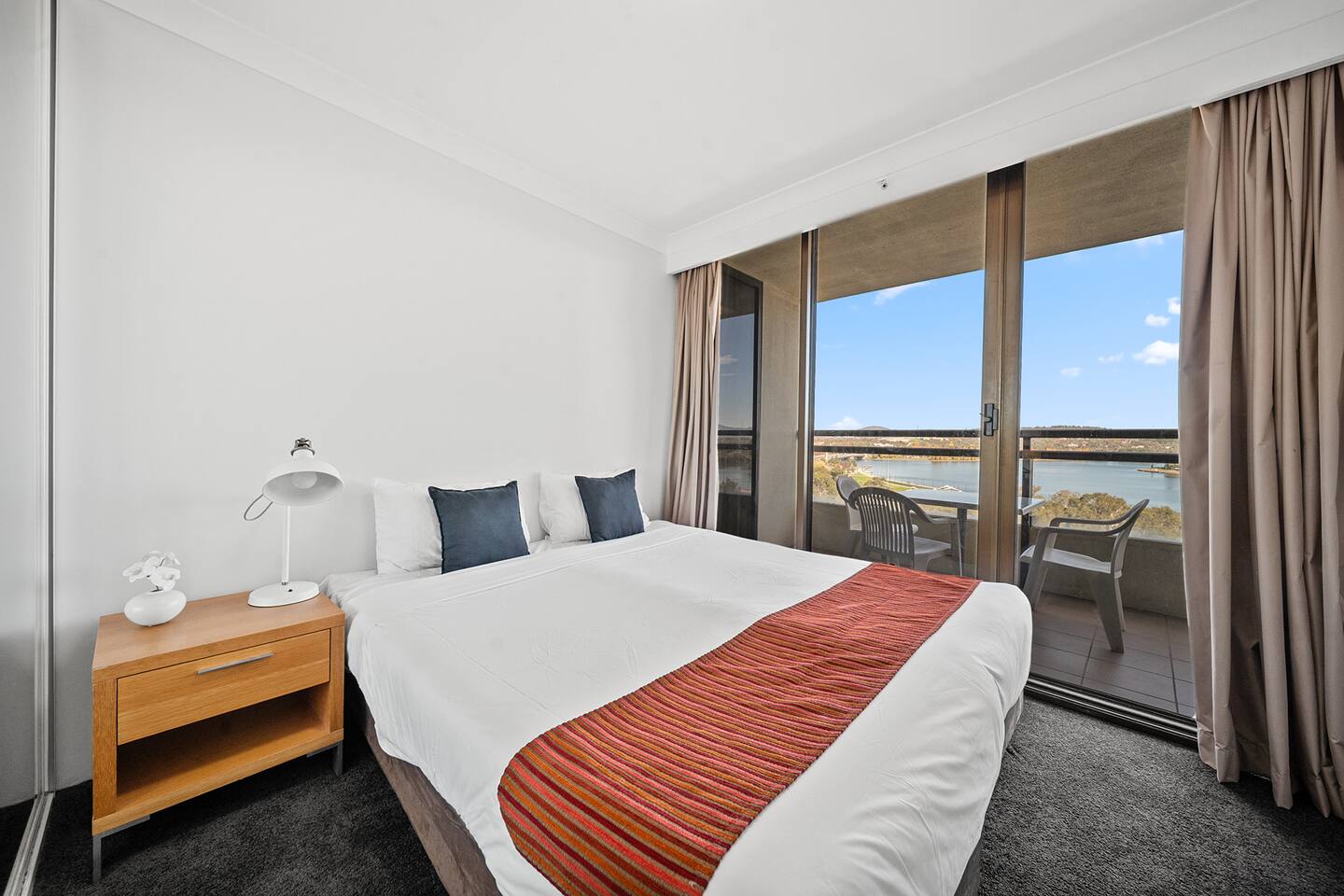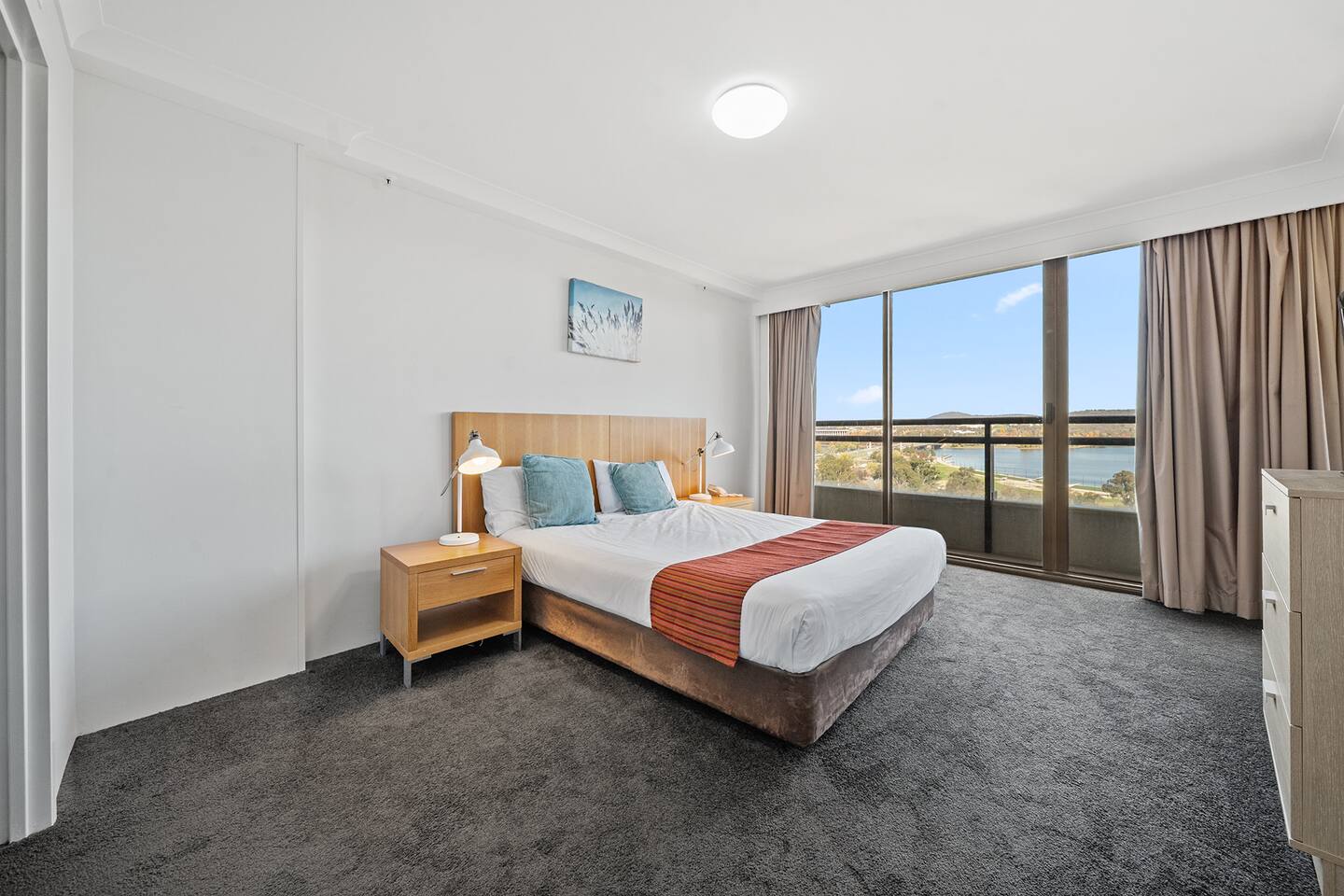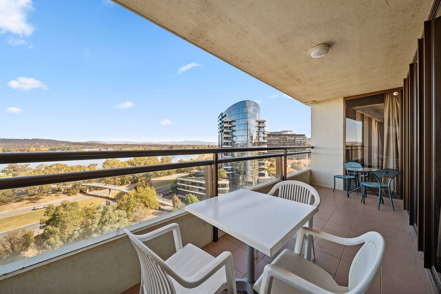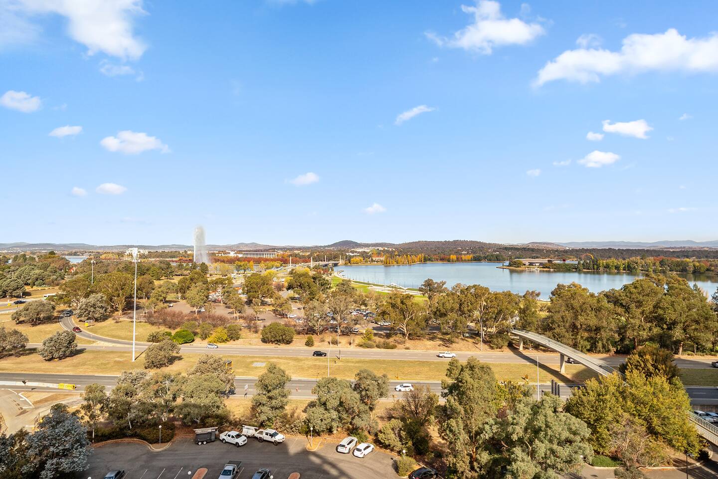 Lakefront Panorama – Classic is a beautifully positioned two-bedroom apartment on the 12th floor of Capital Tower, offering uninterrupted views across Lake Burley Griffin to Parliament House and Canberra’s iconic skyline. Designed for comfort and privacy, it features open-plan living, full-height windows and a private balcony capturing panoramic water and landmark views, plus two bathrooms, secure parking and access to pool and gym facilities.